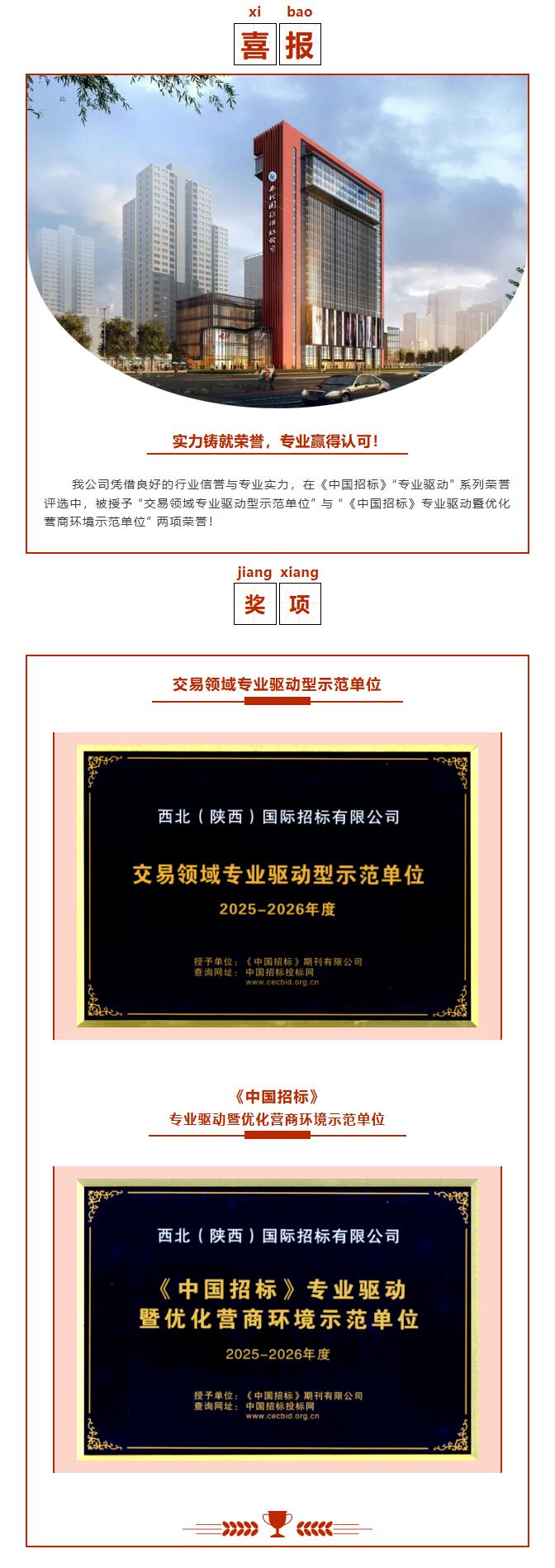 實力鑄就榮譽,專業贏得認可--西北國際招標公司在《中國招標》“專業驅動” 系列榮譽評選中獲兩獎項