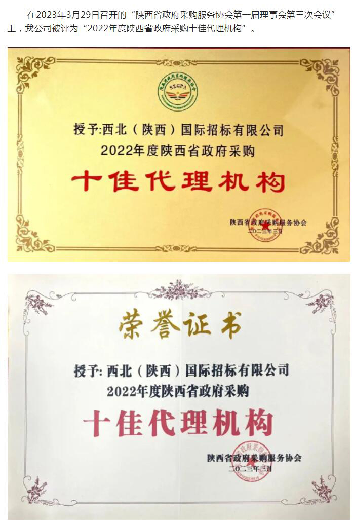 熱烈祝賀我公司被評為“2022年度陜西省政府采購十佳代理機構”