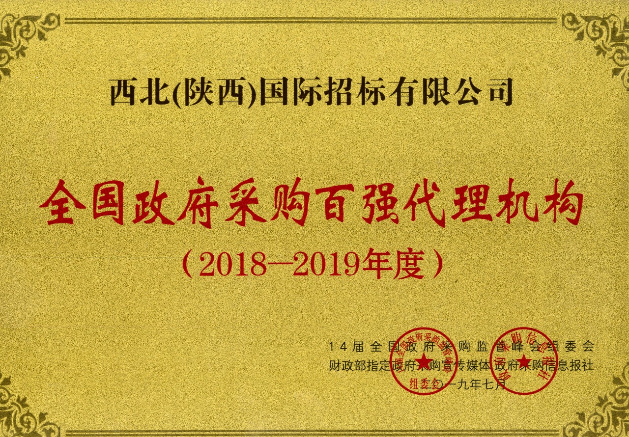 熱烈祝賀西北(陜西)國際招標有限公司榮獲“全國政府采購百強代理機構”稱號