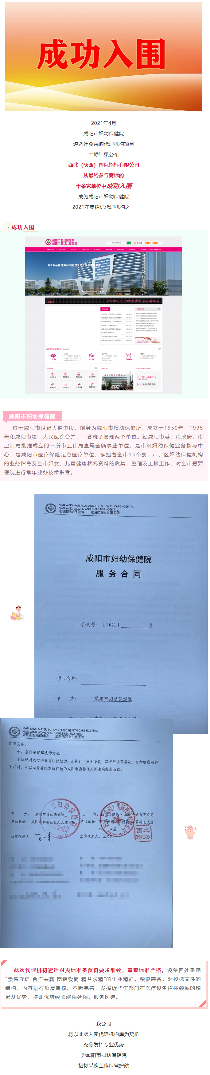 我公司成功入圍咸陽市婦幼保健院代理機構庫