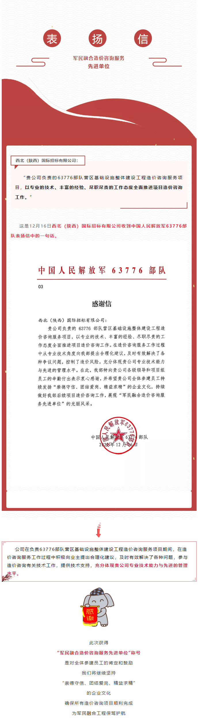 祝賀!公司喜獲“軍民融合造價咨詢服務先進單位”稱號