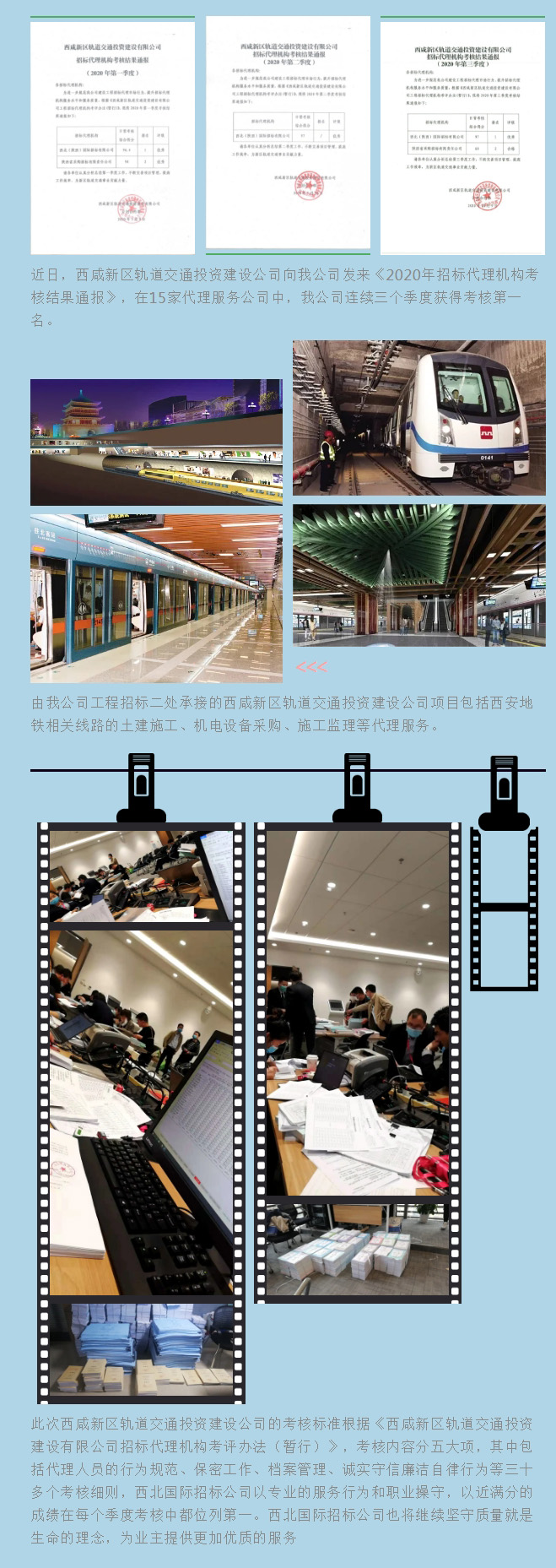 我公司獲西咸新區軌道交通投資建設公司《招標代理機構考核》連續三季度第一名