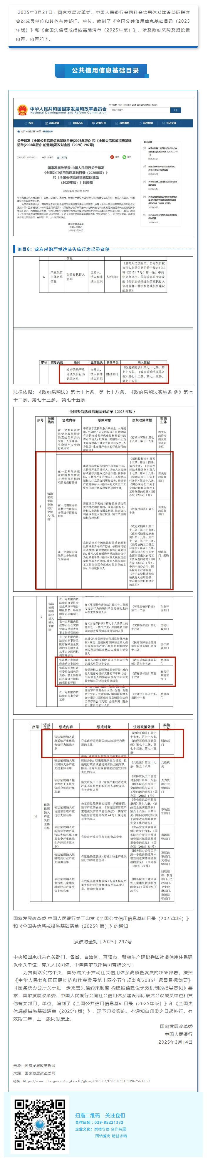 《全國公共信用信息基礎目錄(2025年版)》和《全國失信懲戒措施基礎清單(2025年版)》發布!涉及政府采購!