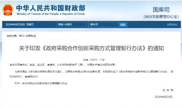 政府采購合作創(chuàng)新采購方式管理暫行辦法